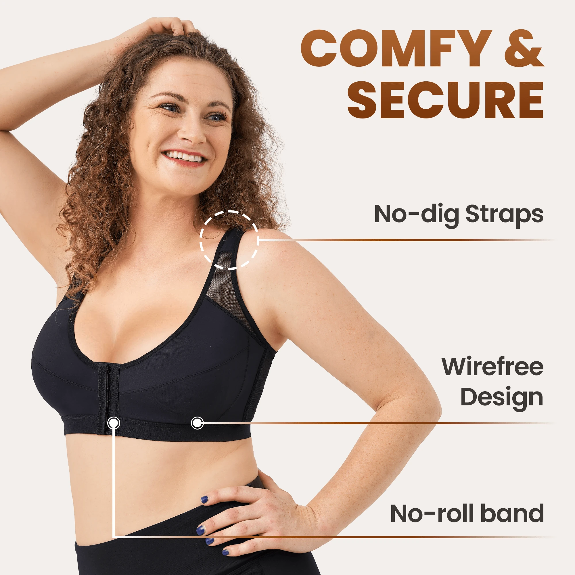 Customize the fit of the GoodyBra with its 3 levels of adjustable hook & eye front closure and adjustable straps.